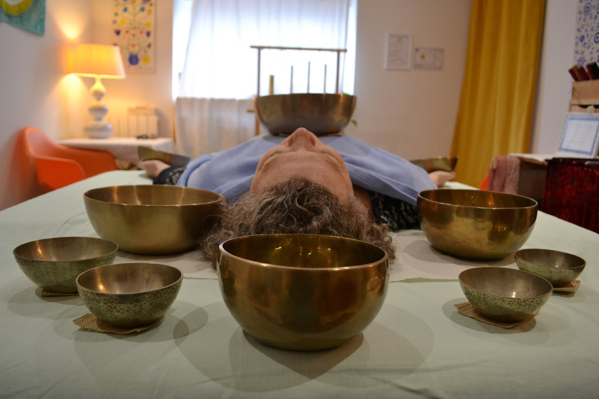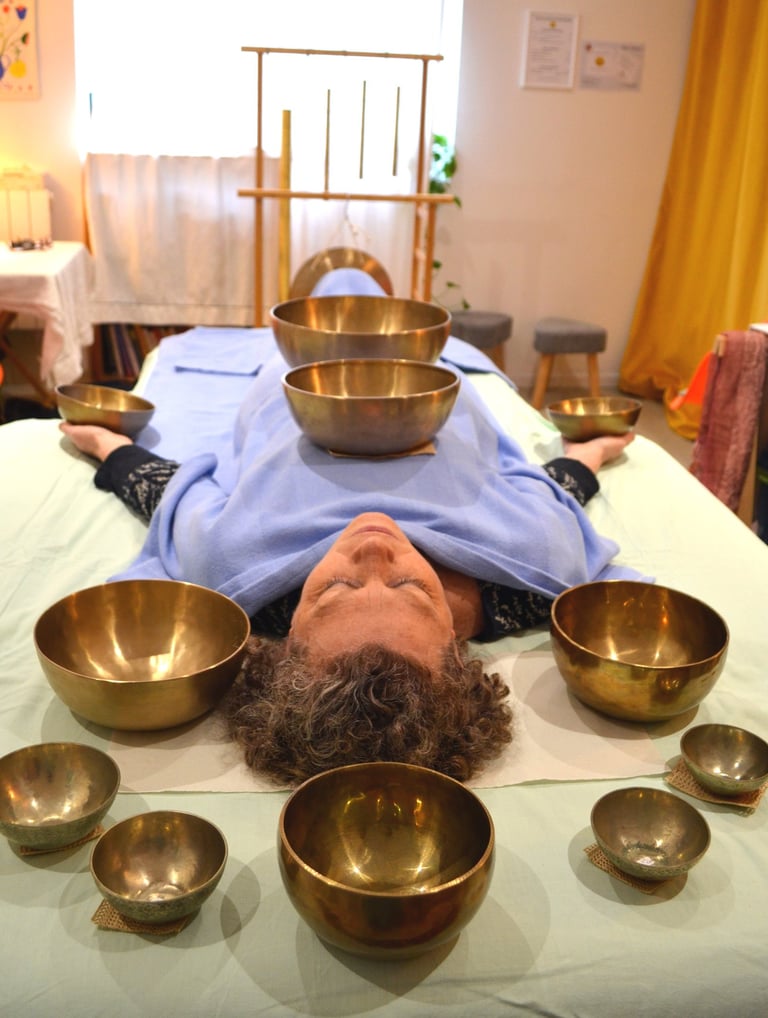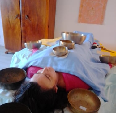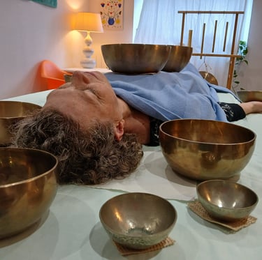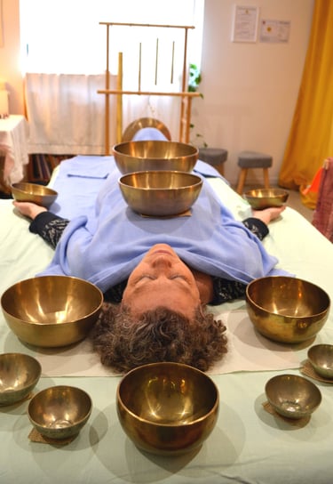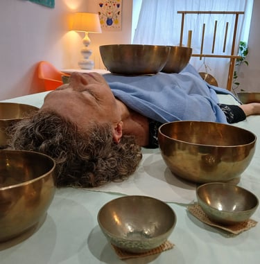 "Les bols chantants sont une grande découverte pour moi une expérience originale . Le son et la vibration des bols produisent un effet très relaxant une détente assurée qui perdure bien au-delà du soin . Je le recommande fortement ."