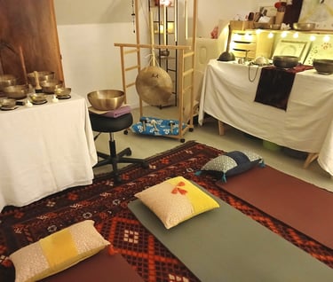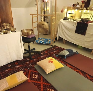 Tous les premiers samedis du mois à 11h, je vous propose à mon cabinet, dans un cadre chaleureux, des moments d’immersion dans les sons enveloppants des bols tibétains et autres instruments afin de vous créer une bulle de bien-être et de ressourcement. Avec les énergies du moment vous profiterez d’un bain sonore et d’une méditation guidée qui vous aideront à repartir sereins et régénérés. Ouverts à tous.